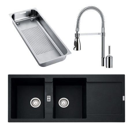 Kit Maris Reversible Black Franke Lavaplatos + Grifería + Escurridor