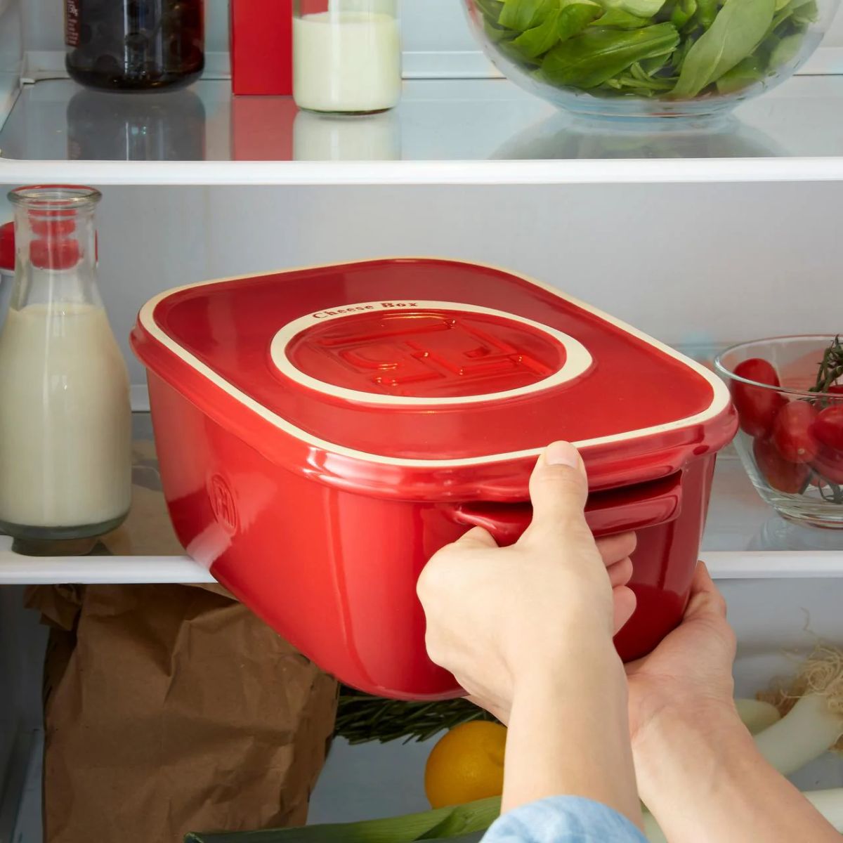 Diseñada para llevar el queso del refrigerador a la mesa, simplemente voltea la tapa, coloca los trozos de queso, enteros o en lonchas, y llévalos a la mesa para servir. Práctica también para comidas tipo buffet y bandejas de happy hour, la bandeja es elegante y de tamaño perfecto. Sus líneas suaves y su fino esmaltado la convierten en una atractiva pieza de vajilla. Una vez terminado, simplemente envuelve el queso sobrante, devuélvelo a la caja, ciérrala con la tapa después de limpiarla y guarda.