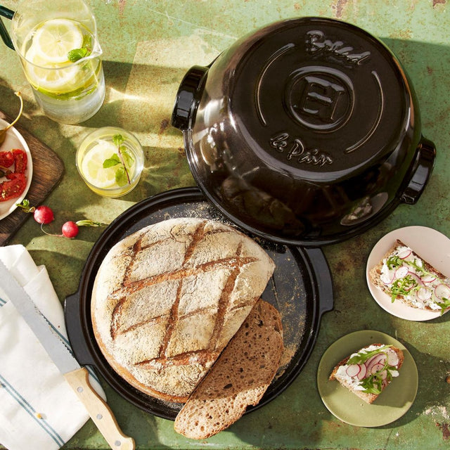 El secreto de un pan crujiente y exitoso reside en el horneado. La cúpula de la panera redonda Emile Henry está hecha de cerámica refractaria, lo que produce el mismo nivel de humedad que un horno de pan tradicional. Esto crea una corteza gruesa y crujiente y un interior ligero y esponjoso. El esmalte altamente resistente y el patrón entrecruzado de la bandeja evitan que el pan se pegue y facilitan la limpieza. ¡La panera redonda es la herramienta ideal para hornear su pan casero crujiente! (Hecho en Francia, este producto tiene una garantía de 10 años).