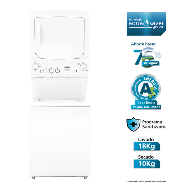 Este centro de lavado Mabe está fabricado con materiales resistentes para que puedas disfrutar de una higiene impecable. Tiene una capacidad de lavado de 18 kg, perfecto para lavar grandes cantidades de ropa a la vez y una capacidad de secado de 10 kg.