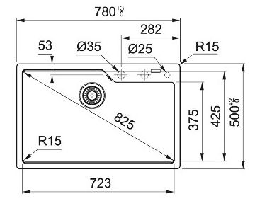 Encastre (largo x ancho) 744.00 mm x 464.00 mm