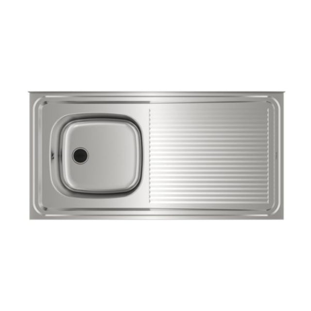 El lavaplatos TEKA 100.50 1C 1E DER está fabricado en acero inoxidable 18/10 de grado quirúrgico, garantizando máxima higiene, durabilidad y resistencia. Diseñado para instalación sobreponer, cuenta con una cubeta insonorizada de 155 mm de profundidad, escurridor lateral y rebalse redondo. Incluye válvula de 1½ pulgada con tapón y cadena.