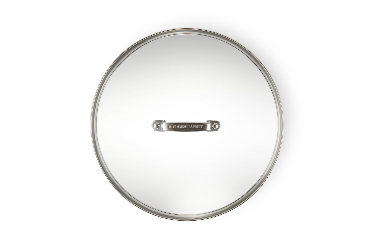 La Tapa Cristal 28 cm Le Creuset resiste hasta 220 grados Celsius, manteniendo sus mangos fríos para evitar quemaduras. Tiene garantía de 2 años.