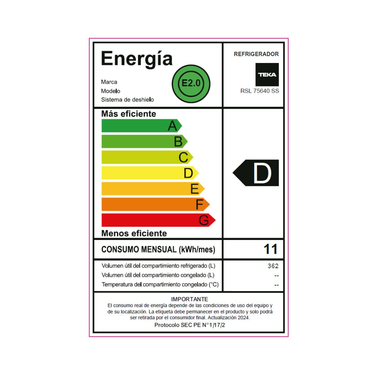 - Gas refrigerante: R600a (42 gramos)