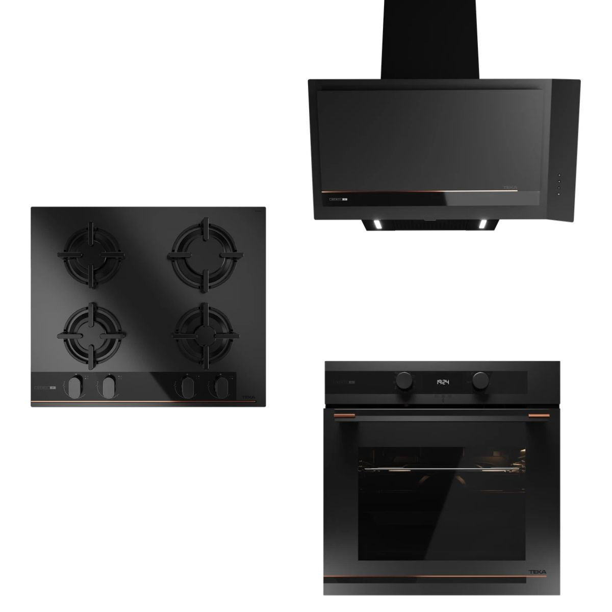 - Campana Decorativa Vertical DVI 88 G1 Infinity Teka : diseño elegante en negro mate, motor EcoPower silencioso, extracción perimetral y capacidad de hasta 800 m³/h.