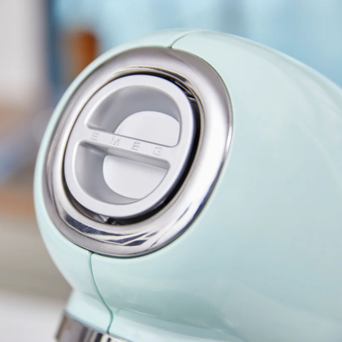 Esta batidora stand mixer Smeg combina diseño retro con potencia y precisión. Con 800 W de motor y 10 velocidades ajustables (con arranque progresivo), ofrece un movimiento planetario que garantiza mezclas uniformes. Incluye base antideslizante y sistema de bloqueo de seguridad cuando su cabeza está levantada, ideal para lograr resultados profesionales con estilo.