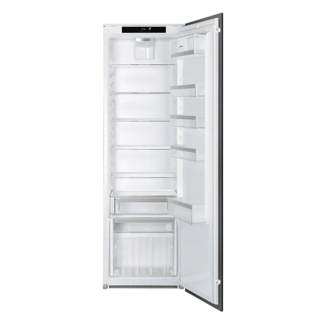 El refrigerador monopuerta integrable SMEG S8L1743E combina diseño elegante, alto rendimiento y eficiencia energética. Con 311 litros de capacidad y sistema de refrigeración ventilado, ofrece excelente distribución del frío y tecnología avanzada como control electrónico, funciones especiales, alarma y pantalla táctil. Ideal para una cocina empotrada de estilo moderno.