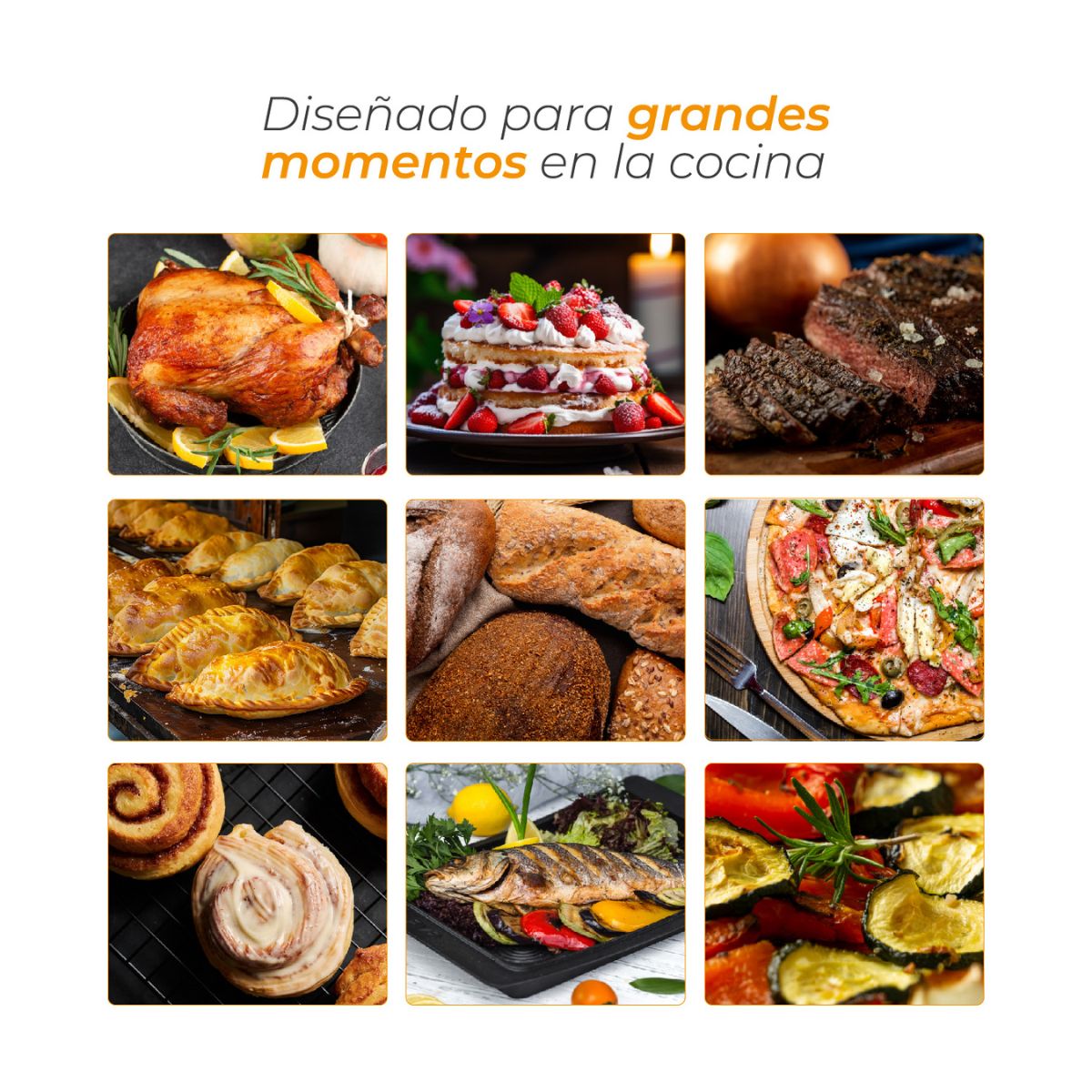 - Modos de cocción: Hornear, Asar, Grillar/Gratinar